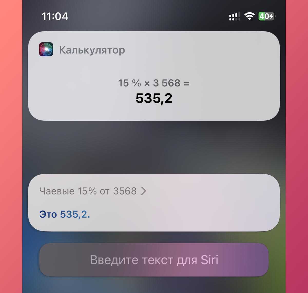 Можно производить вычисления еще быстрее, если попросить посчитать что-то Siri.