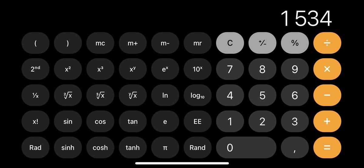 Как упоминалось ранее, вы можете получить доступ к научной версии приложения iPhone Calculator, установив альбомный формат. Это позволяет выполнять сложные вычисления, такие как дроби, квадратные корни, экспоненты, логарифмы и т. Д. Мы покажем вам, как использовать научный калькулятор iPhone для выполнения некоторых сложных функций.