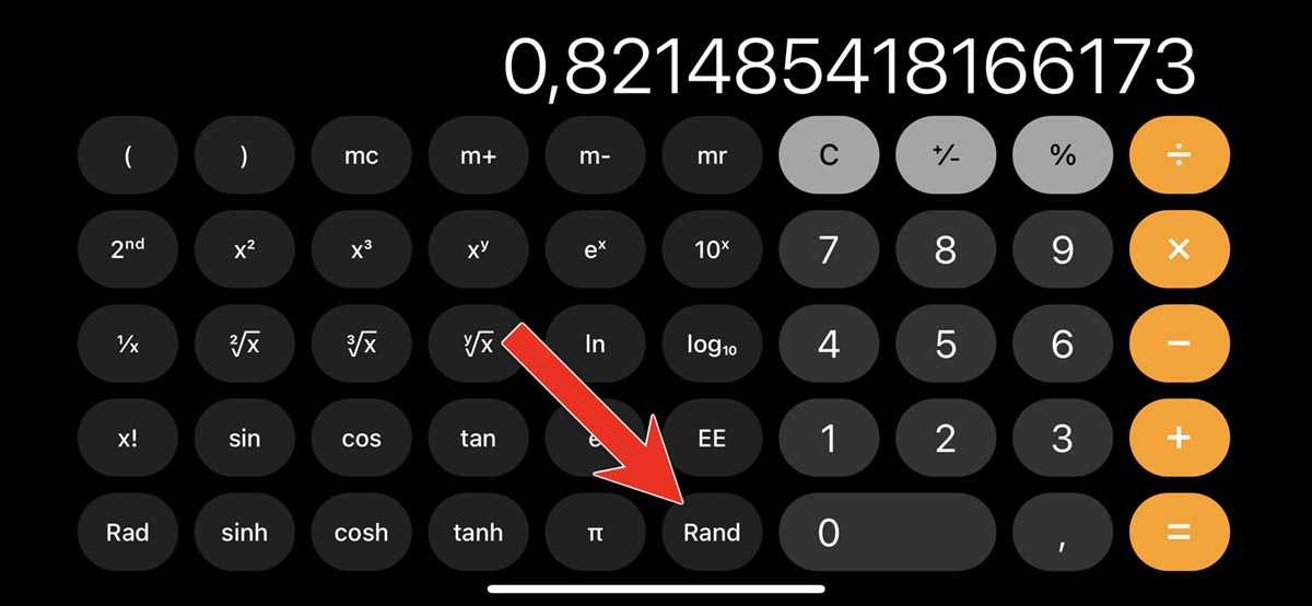 После переключения в режим научного калькулятора появляется одна полезная опция – генератор случайных чисел.
