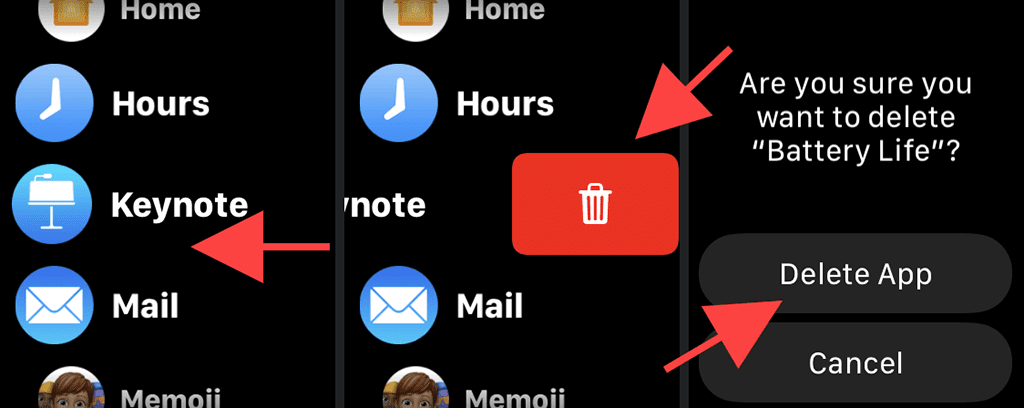 Note: If swiping a pre-installed app to the right doesn’t reveal a Trash icon, you can’t delete it from your Apple Watch.