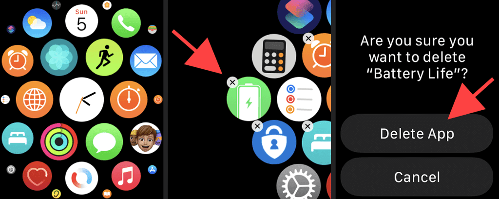 You can delete unwanted apps on the Apple Watch while viewing them in the Home Screen’s default Grid View. The process is similar to removing apps on the iPhone.