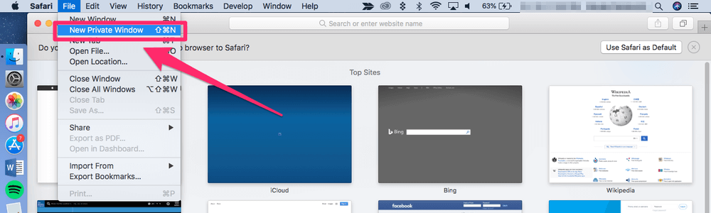 Чтобы активировать приватный просмотр, посмотрите вверху экрана и выберите ФАЙЛ > НОВОЕ ПРИВАТНОЕ ОКНО.