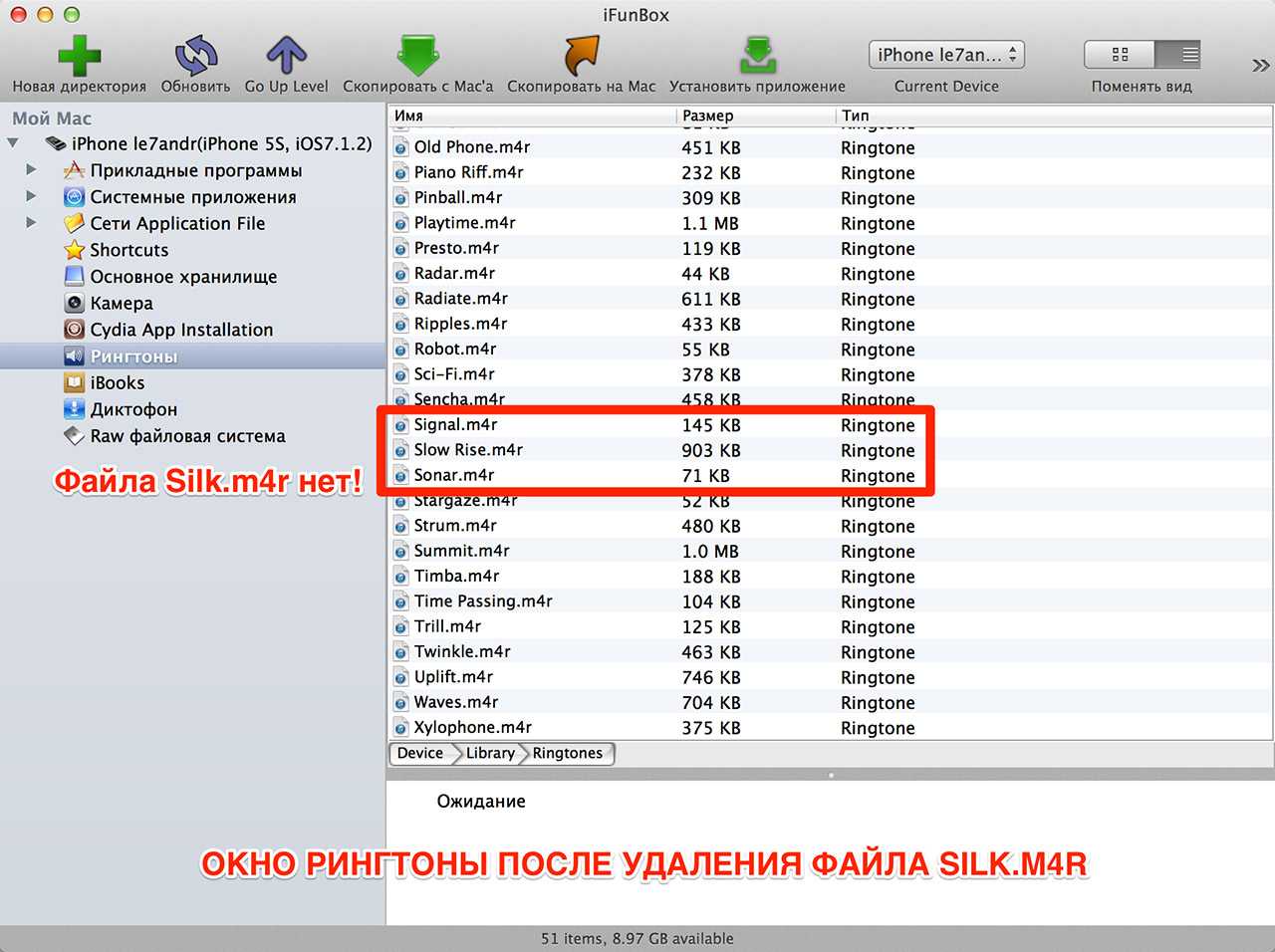 Рингтоны в iPhonе после удаления Silk.m4r
