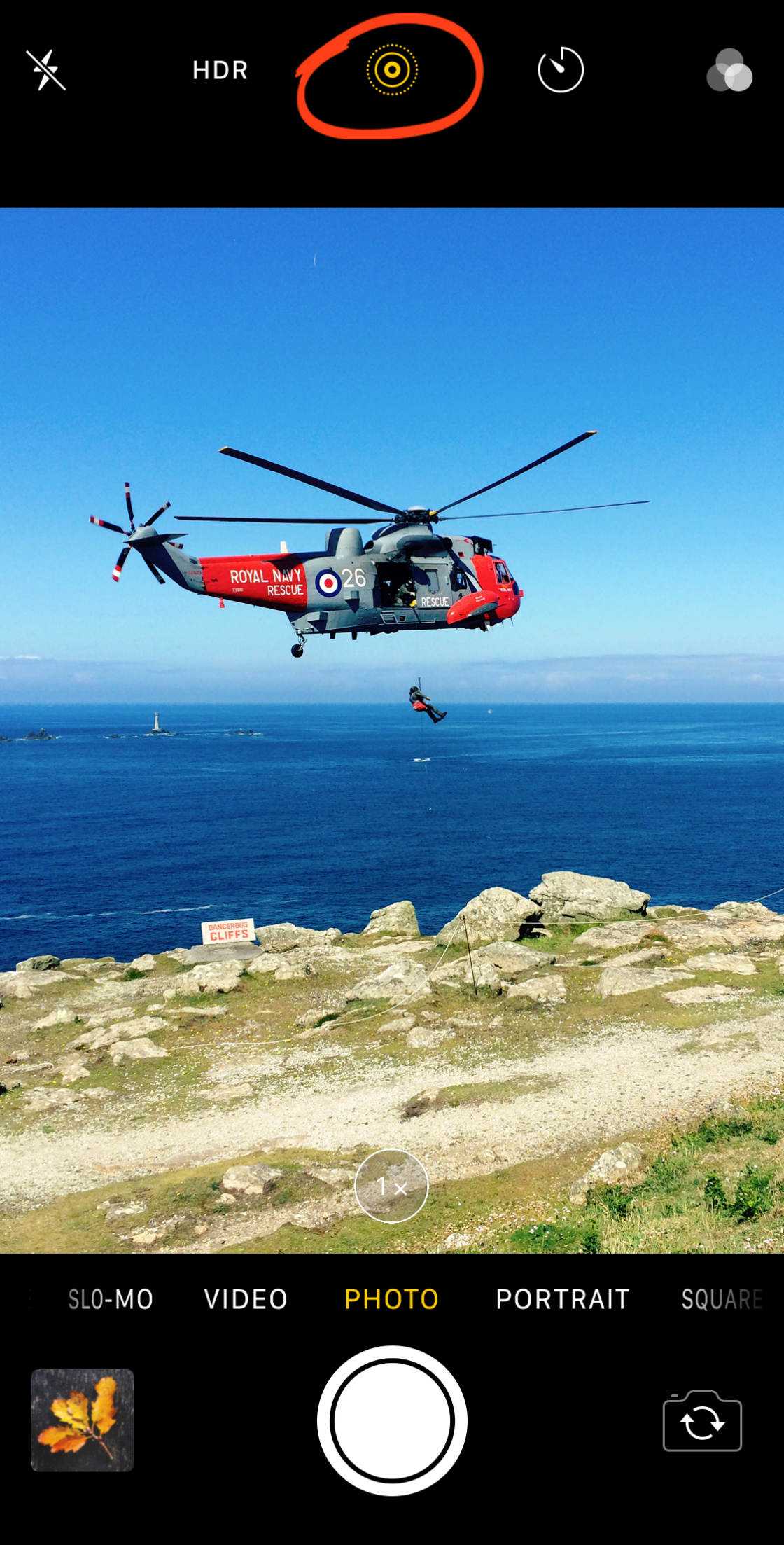 Во-первых, вам’ нужно включить Живые фотографии с помощью значка круга в верхней части приложения «Камера»