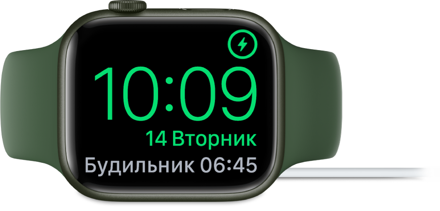 Если включить ночной режим и подключить Apple Watch к зарядному устройству, то на экране будет отображаться статус заряда, текущее время и дата и время срабатывания будильника. Чтобы увидеть время, коснитесь дисплея или слегка толкните Apple Watch. Возможно, достаточно будет лишь слегка толкнуть столик.