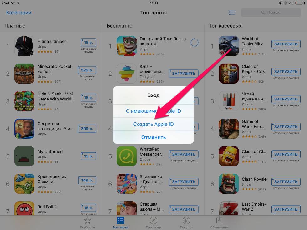 : Теперь необходимо вернуться в App Store и найти Pokemon GO. Если приложение не появится, можно скачать любое бесплатное приложение. Там надо будет выбрать «Создать новый идентификатор Apple», когда предложит войти в систему.