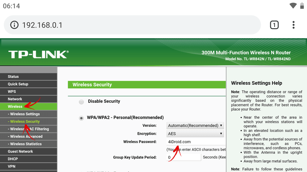 В случае с TP-Link необходимо перейти в режим Wireless Mode. Там нужно войти во вкладку Защита беспроводного режима, и в разделе WPA/WPA2 – Персональный вы легко увидите интересующий вас ключ Wifi.