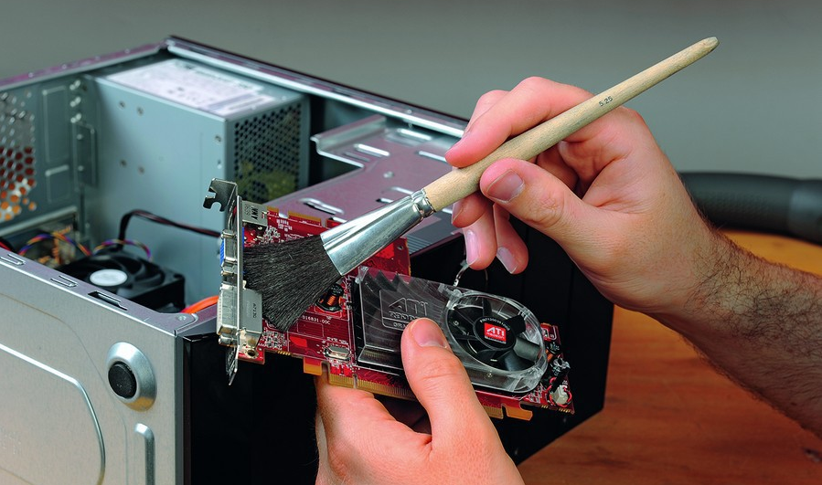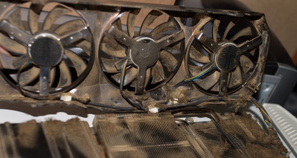 Скопление пыли всегда приводит к понижению эффективности и производительности. Для очистки, откройте корпус компьютера и извлеките видеокарту. Пыль убирается при помощи кисти и пылесоса. Если используете пылесос, будьте предельно аккуратными, чтобы ничего не задеть и не повредить.