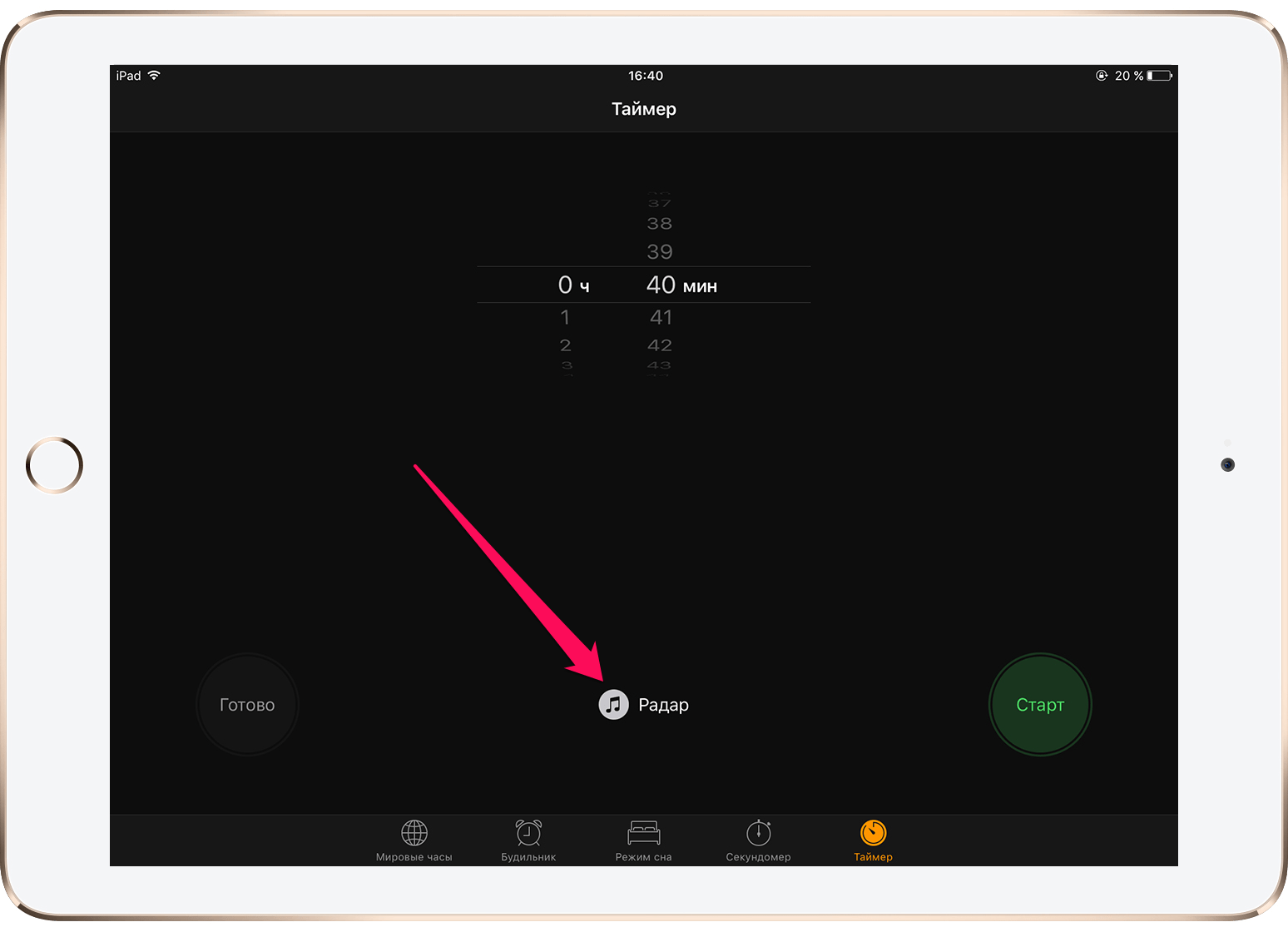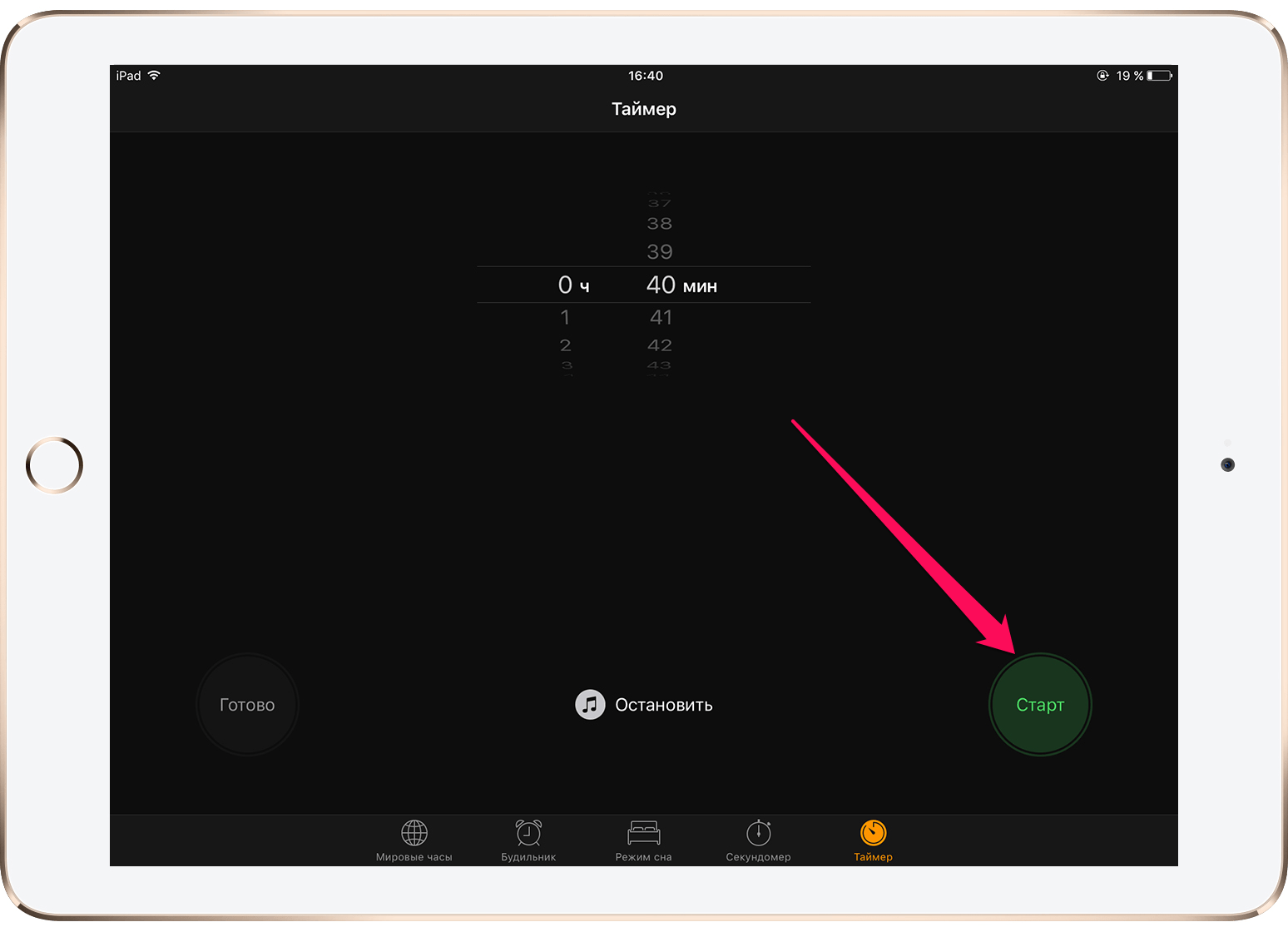 Шаг 5. Установите необходимое время таймера (то, через которое экран iPhone или iPad заблокируется) и нажмите «Старт