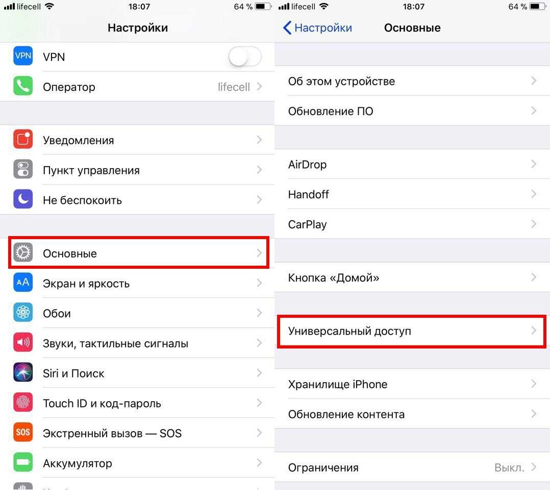 Настройки — Основные — Универсальный доступ;