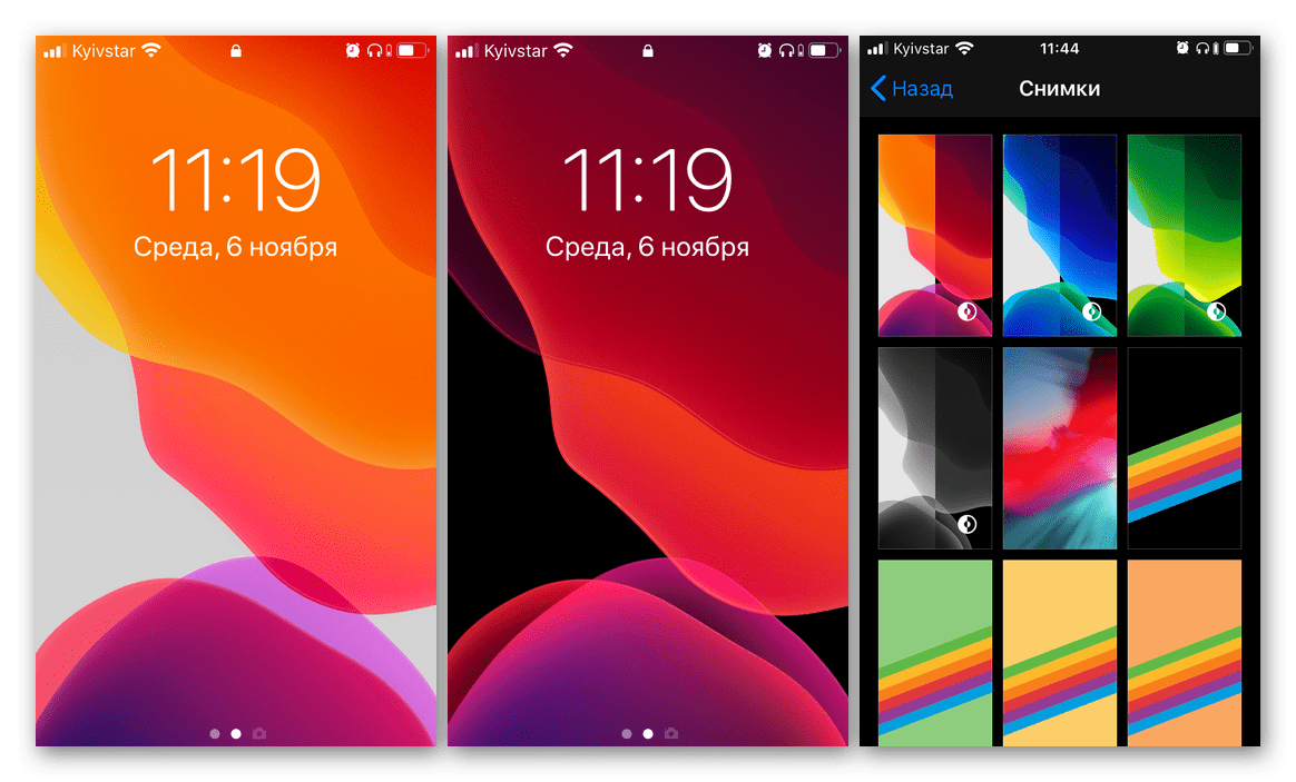 Новые обои, появившиеся в iOS вместе с темной темой, представлены одновременно в двух вариантах, точнее говоря, они просто «подстраиваются» под дизайн интерфейса, становясь светлыми или темными, в зависимости от установленного режима.