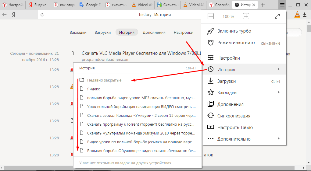Если вы случайно закрыли какую-либо вкладку (не находясь в режиме «Инкогнито»), то ее восстановление возможно следующими способами: