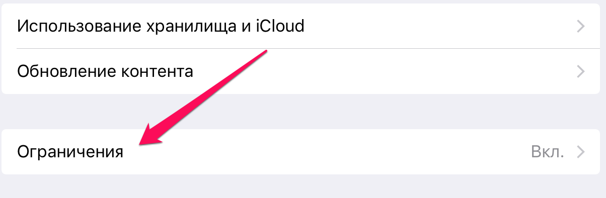 Шаг 2. Нажмите на «Ограничения» и введите пароль, ранее установленный на функцию ограничений. В том случае, если вы не знаете пароль, то его необходимо сбросить. Узнать о том, как это сделать вы можете в этой инструкции (альтернативный способ).