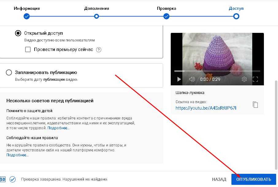 После чего нажимаете на «Опубликовать» и ваш видеоролик становится доступным для просмотра.