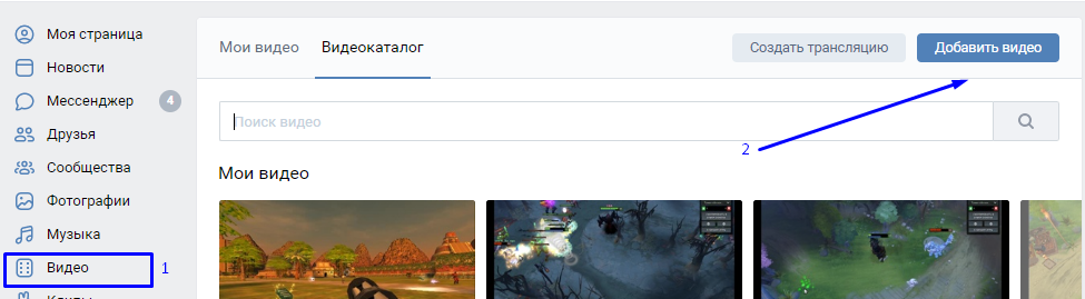 - Авторизуйтесь в профиле и зайдите в раздел «Видео»;