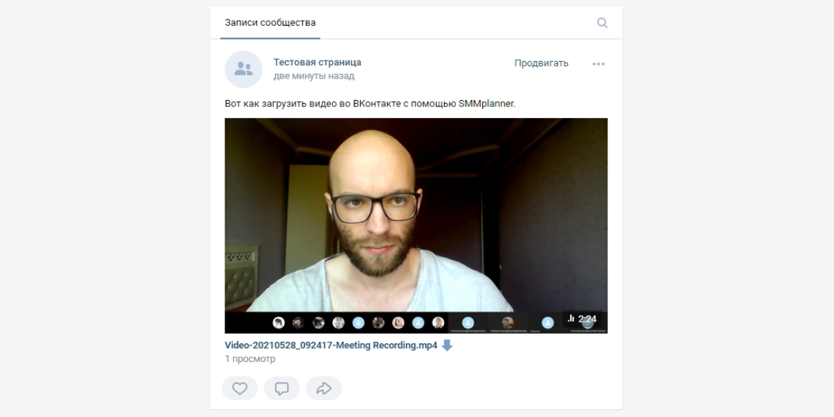 После этого Вы можете спокойно пользоваться видеозаписью – переслать её другим пользователям или залить в свой паблик.