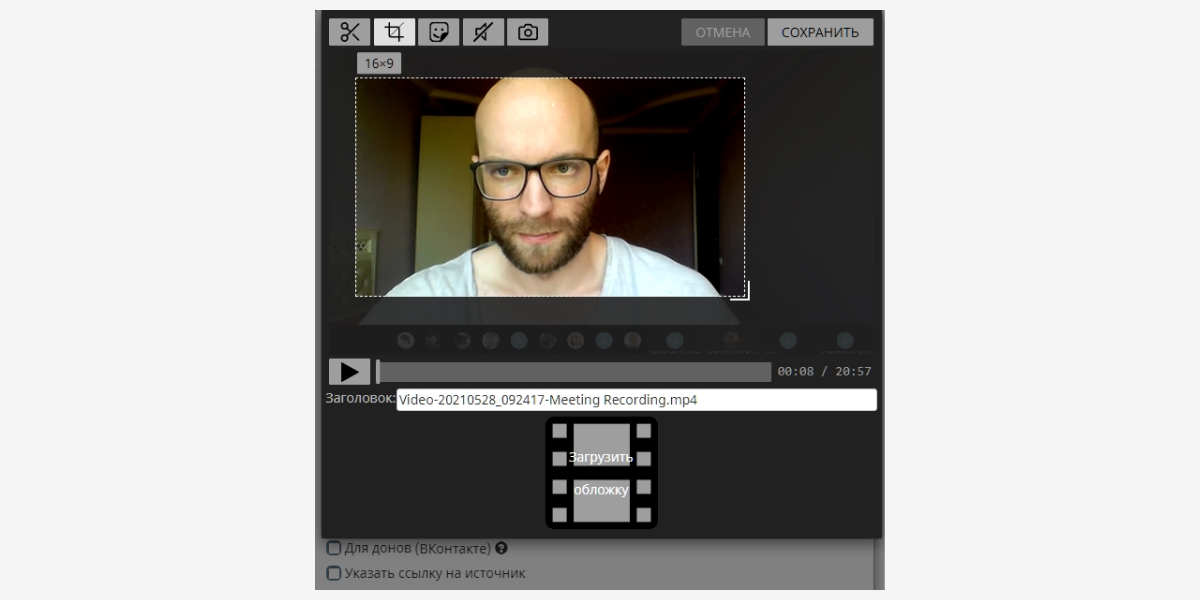 Здесь же загрузите обложку видео, она привлечёт внимание и может увеличить количество просмотров ролика.