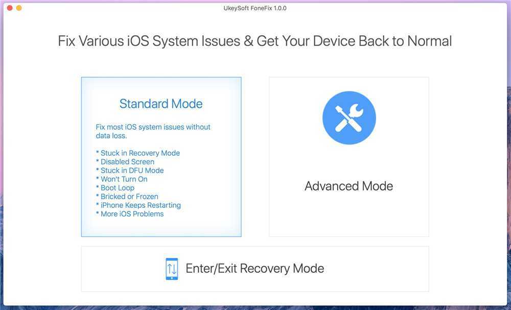 Шаг 1. Запустите UkeySoft FoneFix и выберите Стандартный режим.