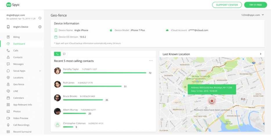 - Spyic также может отслеживать текущее местоположение устройства и действия в популярных приложениях социальных сетей.