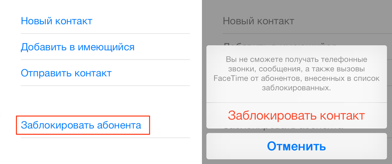 Как заблокировать абонента из списка контактов iPhone?