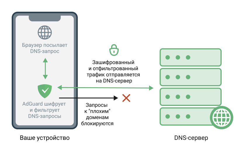 - Включить сервер AdGuard DNS (Настройки —>DNS-защита —>DNS-сервер —>AdGuard DNS).