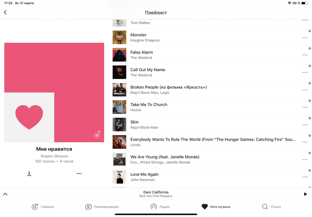 Так же, как и в прочих приложениях, в Яндекс.Музыке вы самостоятельно формируете свой список музыки, которую можете загрузить в память устройства для прослушивания в автономном режиме. Со всеми задачами плеера, приложение справляется в лучшем виде. Так что выделим плюсы и характерные особенности сервиса, которые редко у кого можно встретить: