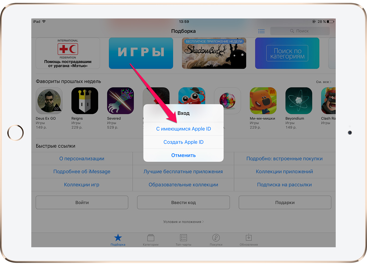 Создание идентификатора Apple ID с помощью App Store на устройстве
