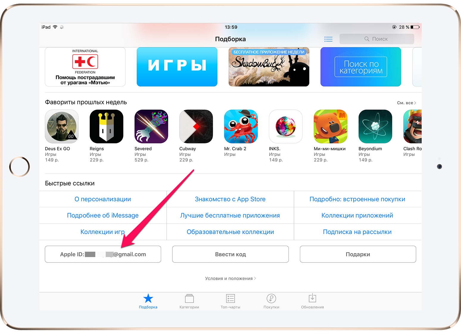 Шаг 2: Сверьте Apple ID с используемым в App Store