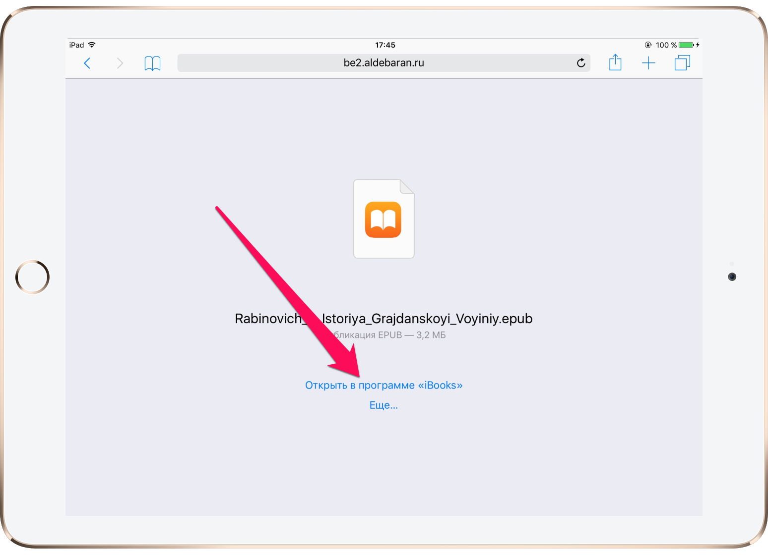 4. В появившейся странице тапните «Открыть в программе iBooks».