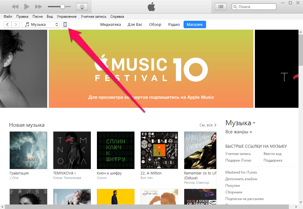 3. В левом верхнем углу iTunes найдите и щелкните на кнопку «Устройства», а затем выберите ваше устройство из списка.