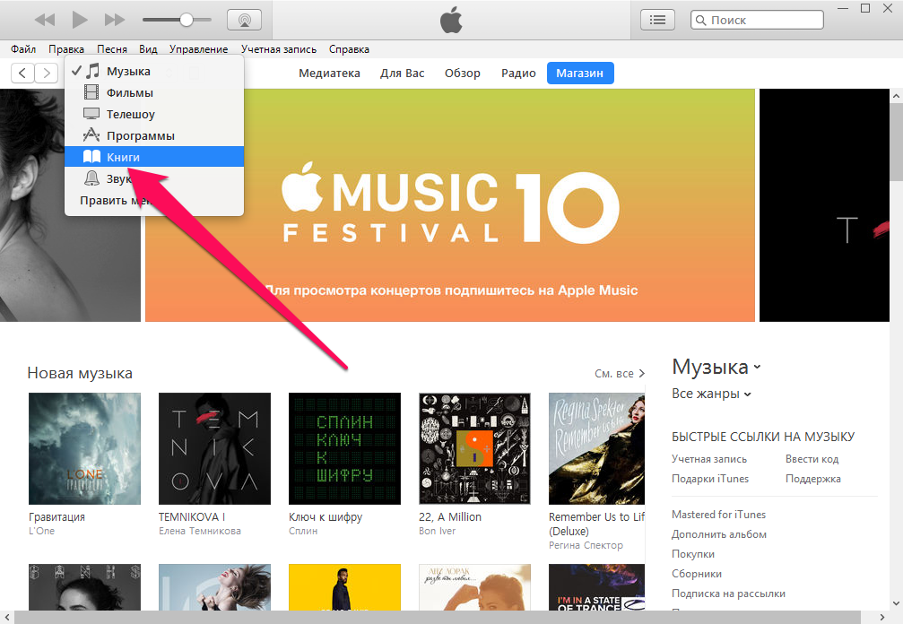 Шаг 1. Запустите iTunes и перейдите в раздел «Книги». Если iTunes на компьютере не установлен, то загрузить последнюю версию утилиты можно на официальном сайте Apple.