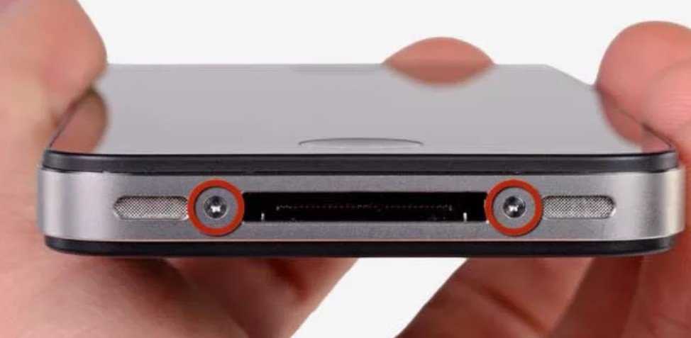 2. Снимите заднюю крышку При помощи отвертки типа «звездочка», выкрутите два винта с обеих сторон от 30-контактного док коннектора.