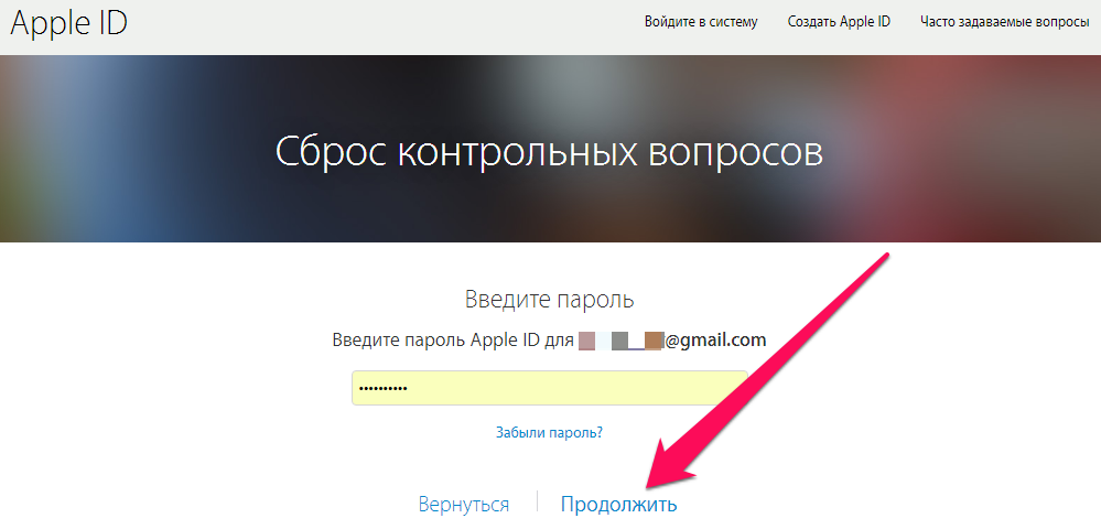 - Дайте новые ответы на контрольные вопросы и нажмите Продолжить , после чего вопросы и ответы будут внесены в учетную запись Apple ID