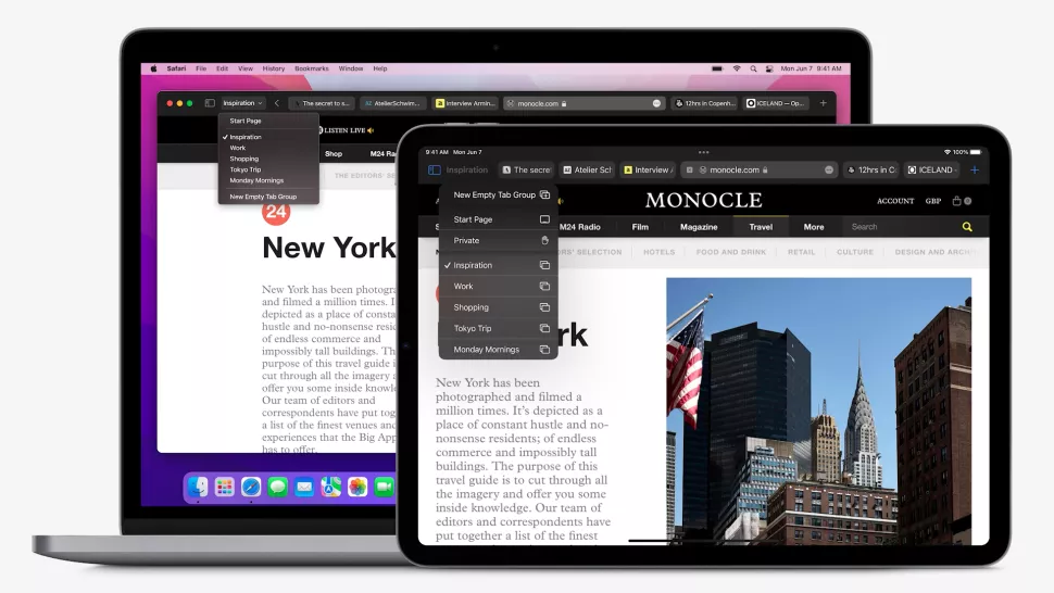 Safari был переработан для macOS 12 Monterey. Вкладки стали более компактными, панель инструментов доработана. Теперь вы можете использовать группы вкладок.