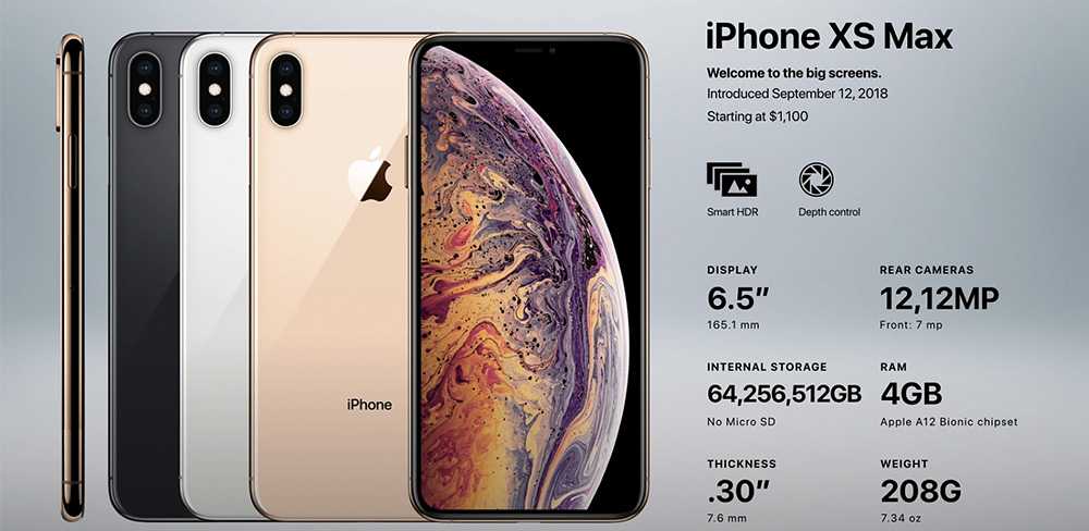 Проводя сравнение iPhone по порядку, обратимся к презентации 2018 года, на которой были представлены 3 новые версии: Xs, Xs Max и XR. Модель Xs Max добилась большой популярности. Это устройство имело диагональ экрана 6,5″ и было первым безрамочным дисплеем такого размера.