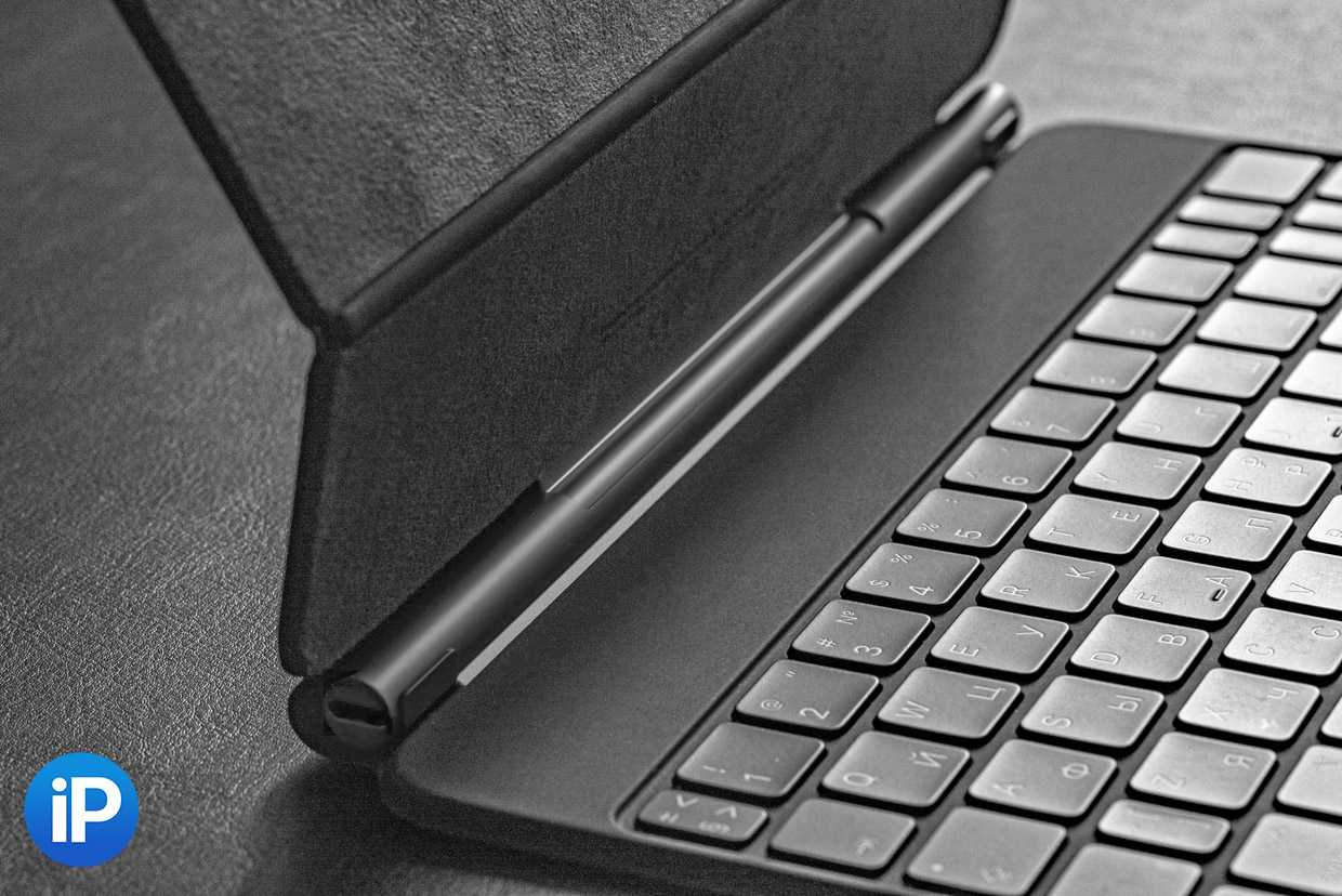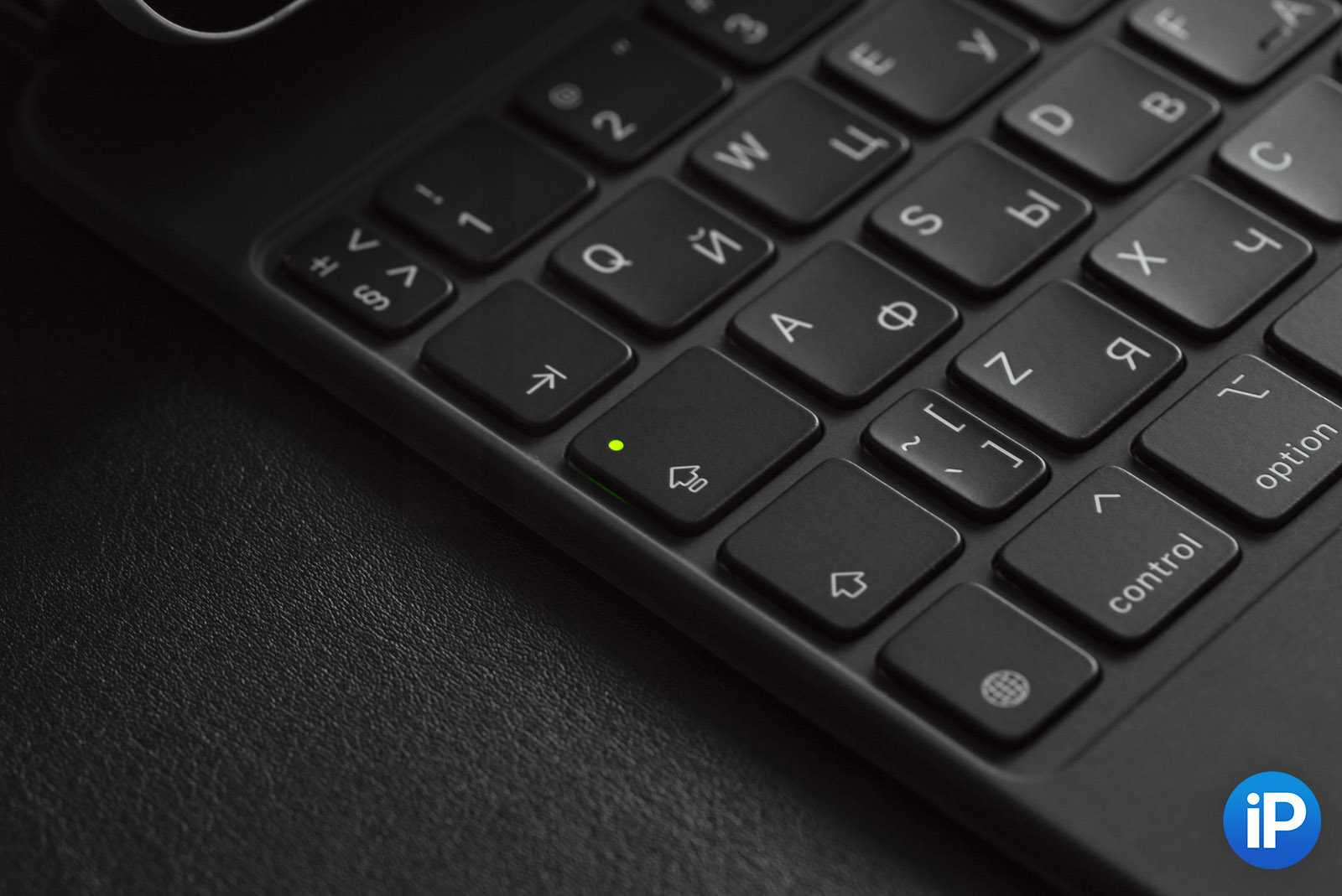 сквозная зарядка через отдельный порт. Magic Keyboard освобождает USB-C в iPad и даёт больше свободы в использовании устройства и подключении других аксессуаров. Это фактически бонусный порт зарядки, и со своей задачей он справляется на отлично.