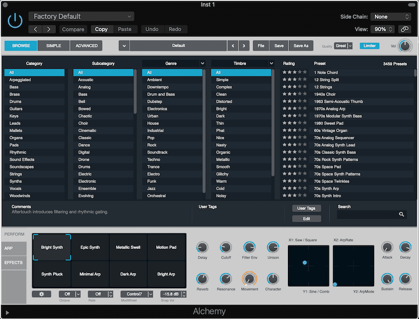 Вероятно, это один из самых известных виртуальных инструментов Logic Pro. Alchemy — это огромный синтезатор с тысячами пресетов и различных инструментов. Его универсальность также означает, что вы можете использовать как простую, так и расширенную версии с множеством настроек. Alchemy — это огромный синтезатор с тысячами пресетов и различных инструментов.