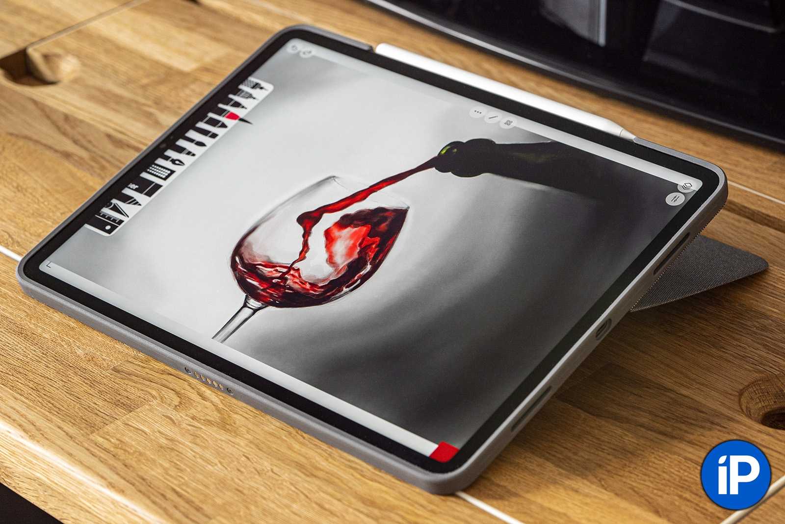большая свобода наклона планшета. Подставка позволяет разместить девайс практически под любым возможным углом. Если вы рисуете на iPad или много пользуетесь Apple Pencil, то Combo Touch может оказаться даже удобнее аксессуара Apple. Положений бесконечное множество, хоть вверх головой переворачивайте. Клавиатура-то съёмная.