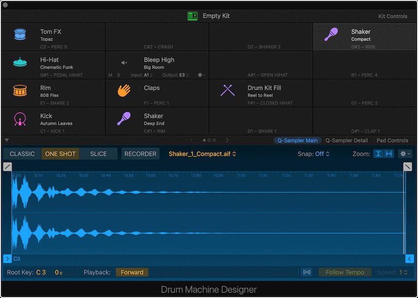 Вы можете использовать этот инструмент как виртуальную драм-машину. В нем есть почти все звуки, которые вам когда-либо понадобятся, от бочки и малого барабана до щелчков, хлопков и всевозможных эффектов. Вставьте свои образцы или выберите их из огромной библиотеки Logic Pro. В Drum Machine Designer есть все звуки, которые вам когда-либо понадобятся