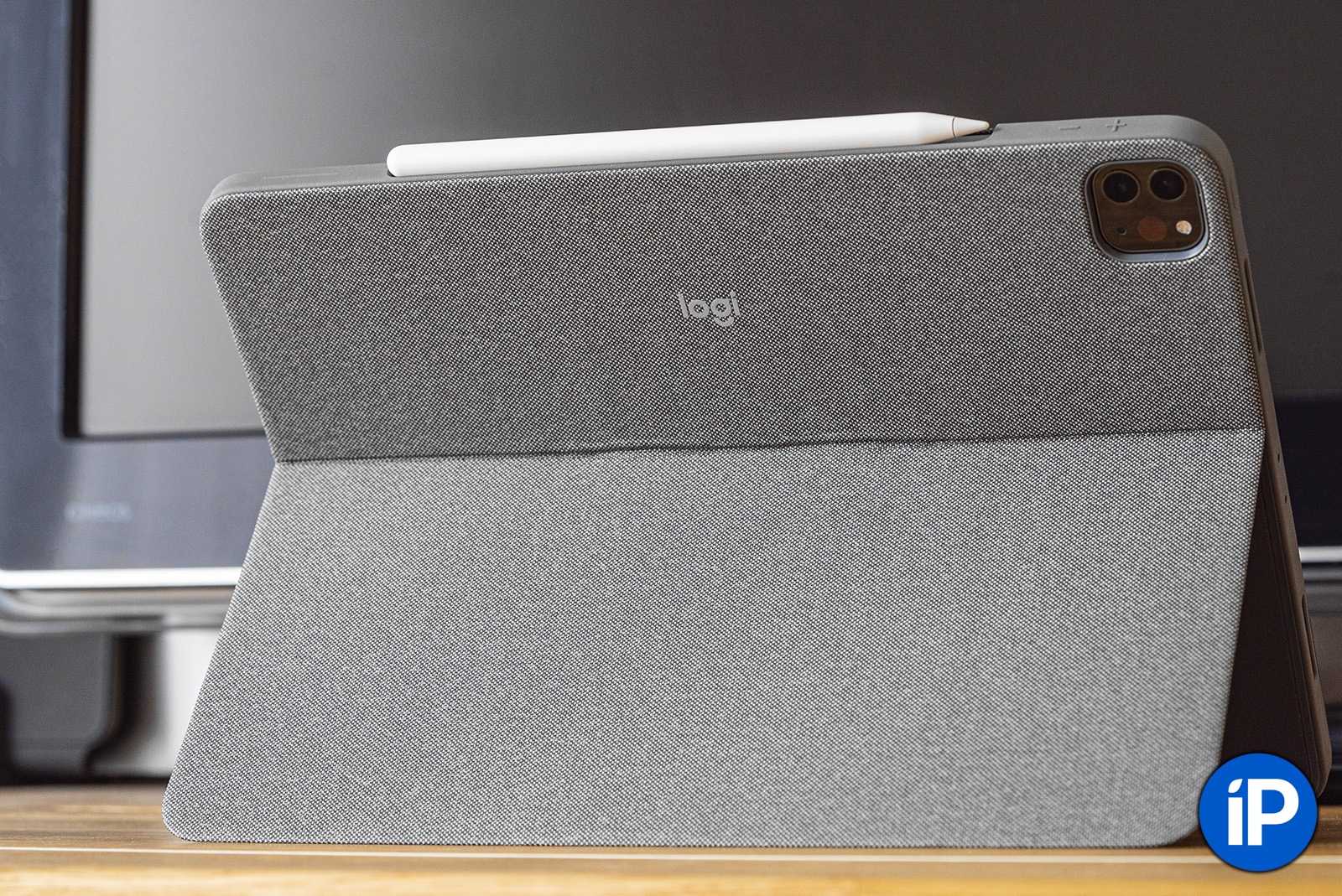 Несмотря на визуальную простоту, подставка в Logitech Combo Touch внушает уважение. Она плотная и тугая, крепкая и без проблем удерживает вес iPad Pro с чехлом.