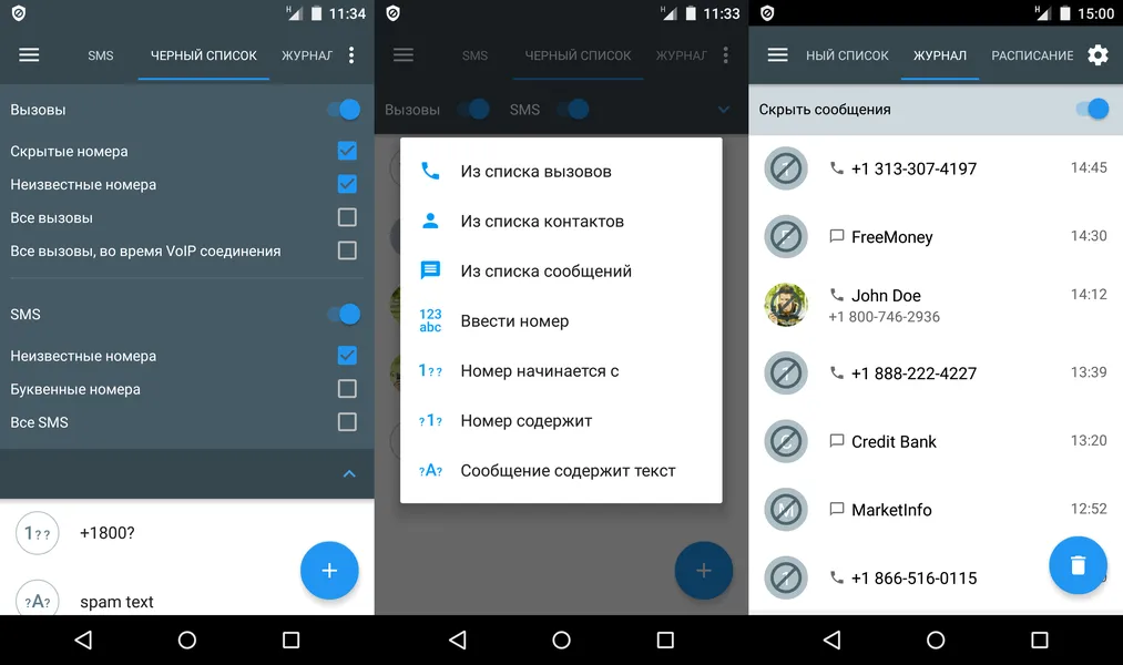 Можно добавить в черный список телефон из списка контактов. Также можно предотвратить звонки с нежелательных номеров спамеров. Разработчики утверждают, что в их базе почти 290 тысяч таких номеров.