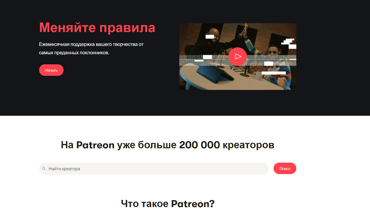 Patreon имеет другую систему, в отличии от большинства донат сервисов. Patreon используют создатели контента. Это могут быть художники, блогеры и не только. С помощью этого сервиса, желающие могут помочь таким людям и подписаться на выплату определённой суммы каждый месяц. За это они смогут получать эксклюзивный контент от автора и прочие фишки.