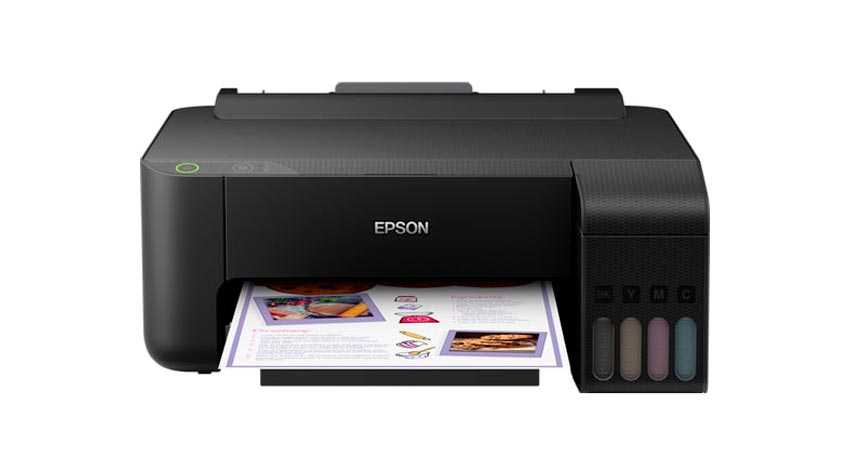 5. Epson L1110. Недорогой, довольно компактный (даже сравнительно миниатюрный) струйный принтер. Потому и непривередлив в выборе места установки и в количестве свободного пространства, что является существенным преимуществом для домашнего использования. Этот принтер напечатает для Вас не только текст, но и фотографии. Он довольно быстрый – 15 страниц в минуту, если работать в цвете, и целых 33 страниц в монохроме в режиме быстрой печати. Вместимость лотка составляет 150 страниц, а максимальное разрешение в цвете целых 5760х1400 dpi. Если Вам часто нужно печатать не только документы, но и фото, то этот вариант подойдет лучше всех.