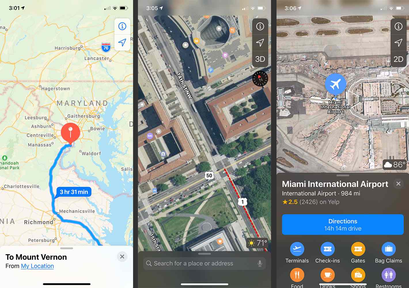 Режим эстакады приложения и трехмерные виды городов предоставляют пользователям вид, аналогичный Google Планета Земля, — трехмерное изображение города, которое можно изучить практически перед поездкой. Добавление фаворитов и коллекций любимых локаций, а также проактивные предложения — это бонусы.