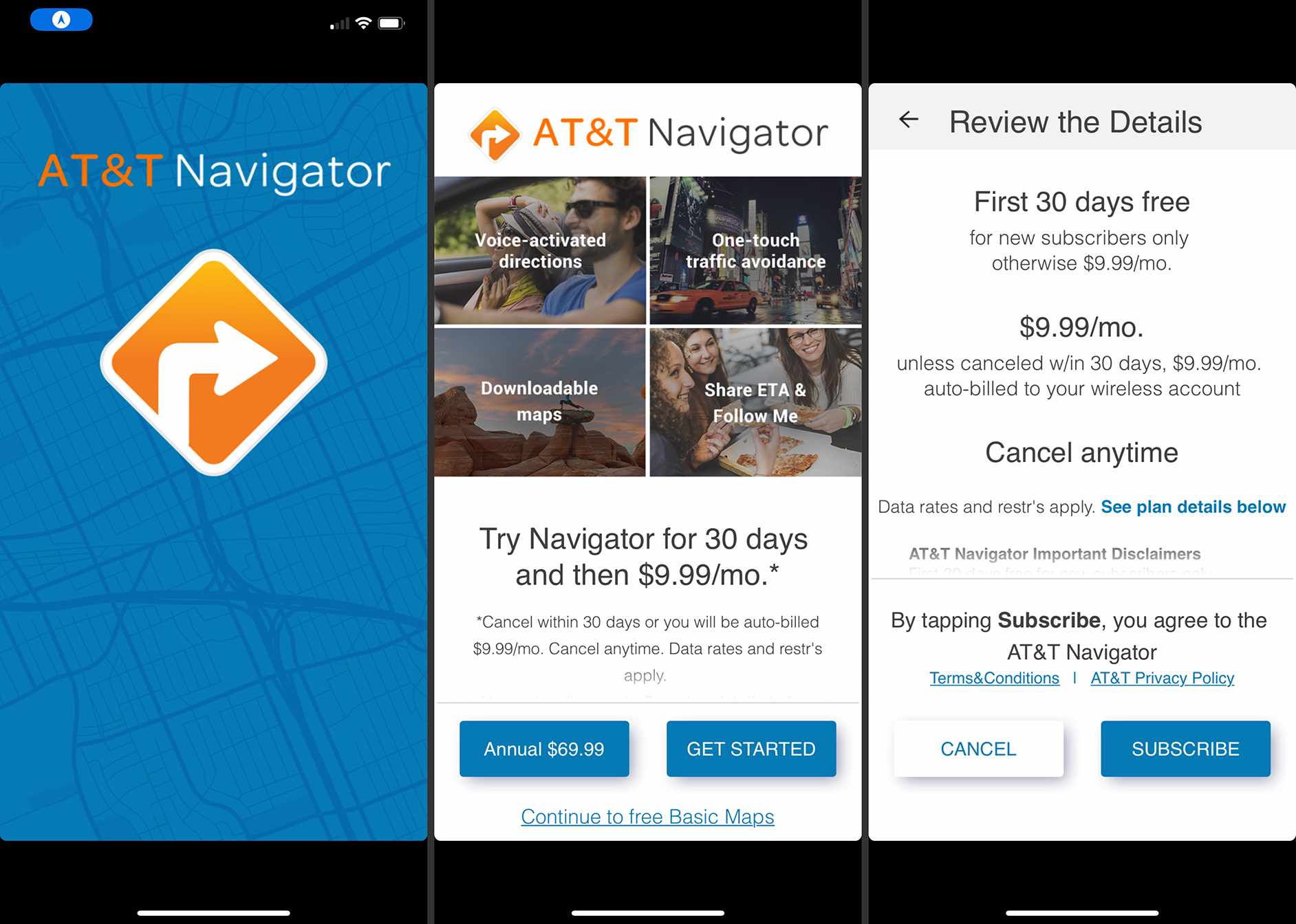 AT & T Navigator приложение трафика работает на модели оплаты подписки. Приложение бесплатное, но для его использования требуется абонентская плата в размере 9,99 долл. В месяц. Сумма списывается с вашего мобильного счета AT & T. Он доступен только для клиентов AT & T, хотя приложение Verizon VZ Navigator аналогично.