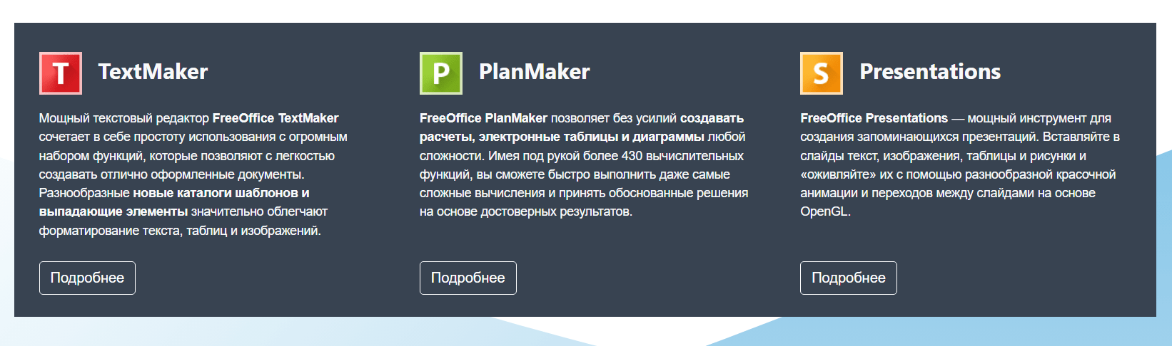 - FreeOffice TextMaker — мощный и функциональный редактор текста, удивительным образом сочетающий в себе простоту использования с огромным набором инструментов.