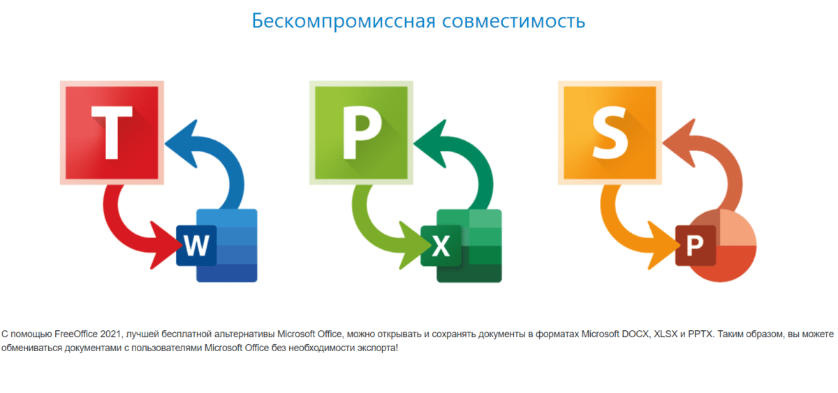 В программе установлено множество шрифтов, форматов и стилей. Она совместима со всеми форматами, что используются в Microsoft Office. Пакет доступен для Windows и macOS. Скачать ее можно с официального сайта разработчика.