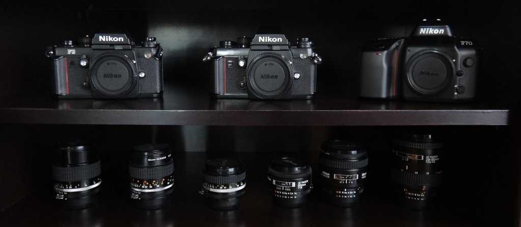 - Зеркальные фотоаппараты Nikon. Главное отличие от беззеркальных – способ передачи изображения на видоискатель. Зеркало, установленное за объективом и перед матрицей под углом 45°, получает картинку через оптику фотоаппарата. Изображение с зеркала попадает на пентапризму, отражается и попадает в видоискатель. Картинка, видимая в оптический видоискатель зеркальной камеры, доставляется фотографу без задержек и искажений, в том же виде, в котором она передается матрице. Зеркальные камеры отличаются большим, в сравнении с беззеркальными, физическим размером матрицы, большей светосилой объективов, и значительно более широким выбором аксессуаров и сменной оптики.