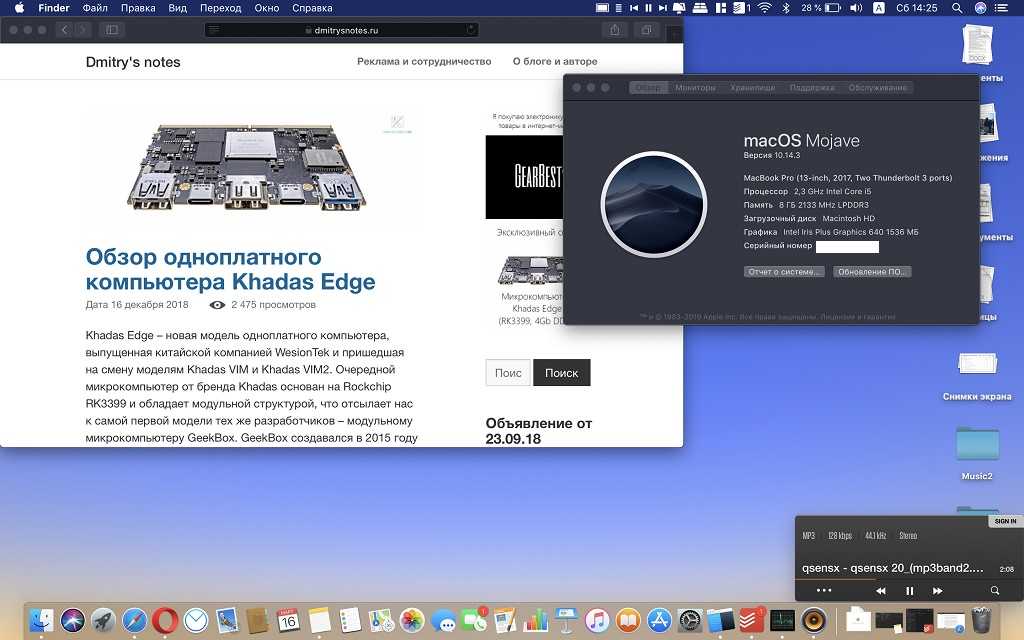 В последнем на текущий момент обновлении macOS Mojave помимо всего прочего появилась темная тема оформления. Смотрится очень красиво и современно, меньше утомляет глаза при длительной работе.