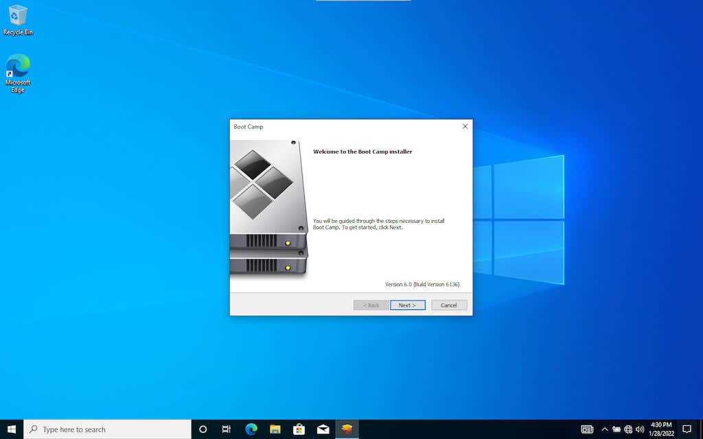 9. Your Mac will boot into the Windows 10 desktop momentarily. You are halfway there!